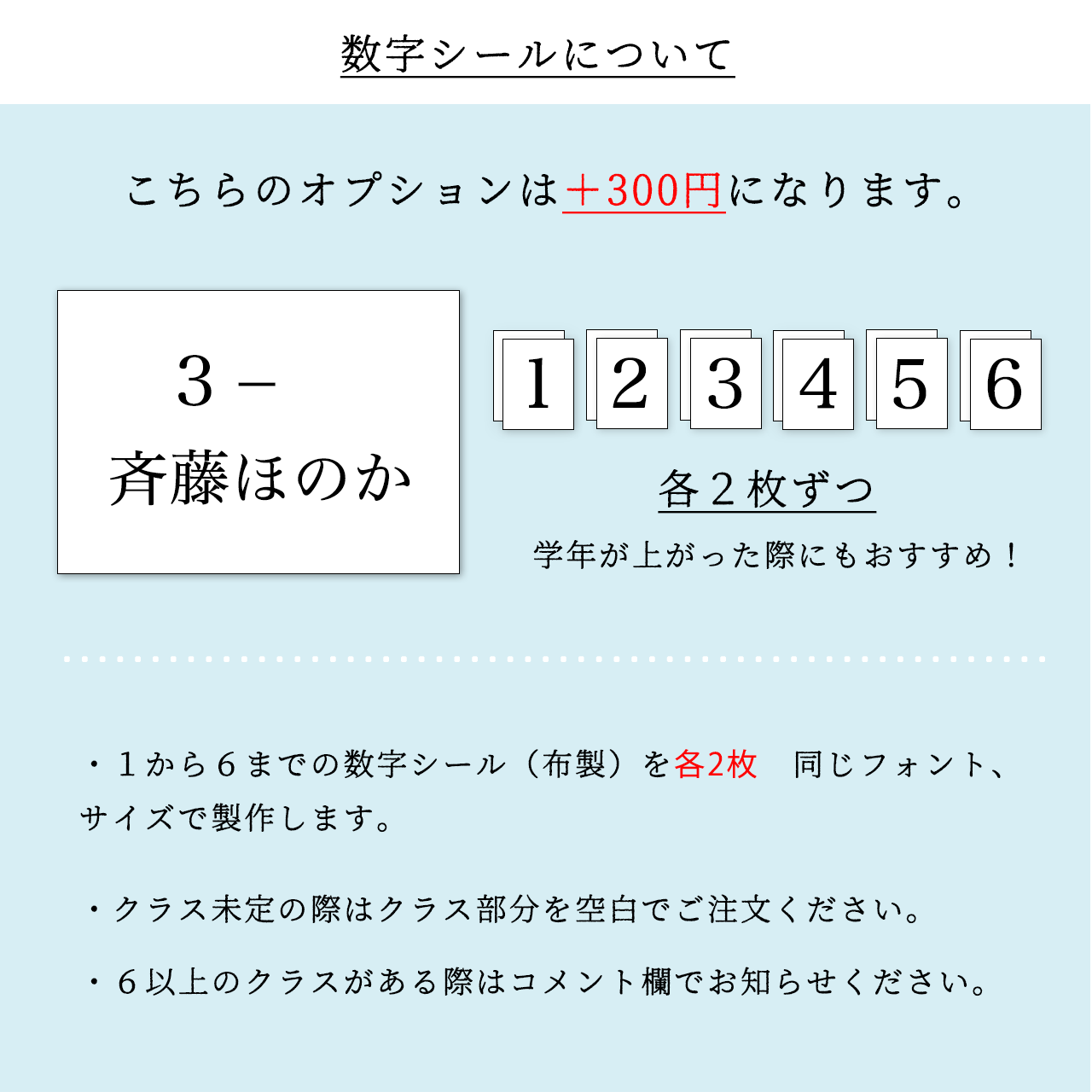 ・オプションの数字シール有無(+300円)
